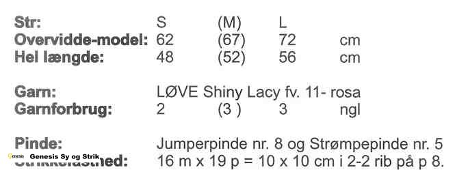 Klik på skemaet for at se størrelse, garnforbrug, pinde, strikkefasthed m.m.