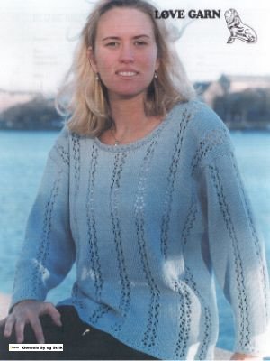 Strikkefasthed: 20 m x 30 p= 10 x 10 cm glat med hulmønster
