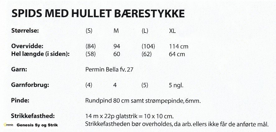 Klik på skemaet for at se størrelse, garnforbrug, pinde, strikkefasthed m.m.