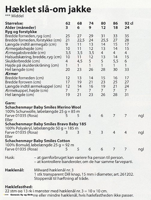Klik på skemaet for at se størrelse, garnforbrug, pinde, strikkefasthed m.m.