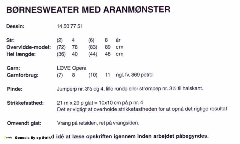 Klik på skemaet for at se størrelse, garnforbrug, pinde, strikkefasthed m.m.