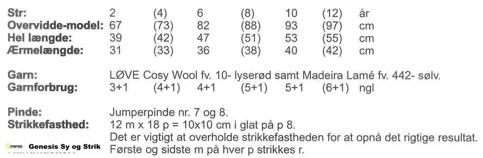 Klik på skemaet for at se størrelse, garnforbrug, pinde, strikkefasthed m.m.