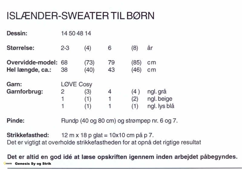Klik på skemaet for at se størrelse, garnforbrug, pinde, strikkefasthed m.m.