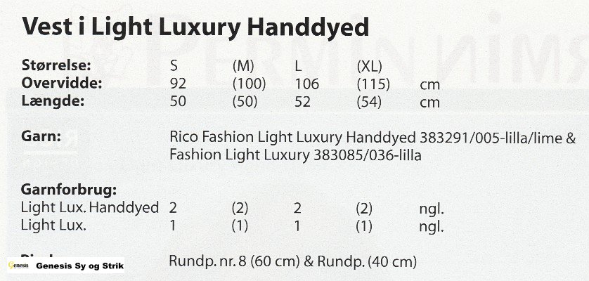 Klik på skemaet for at se størrelse, garnforbrug, pinde, strikkefasthed m.m.