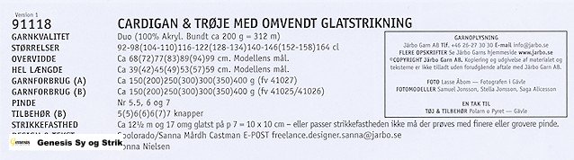 Klik på skemaet for at se størrelse, garnforbrug, pinde, strikkefasthed m.m.