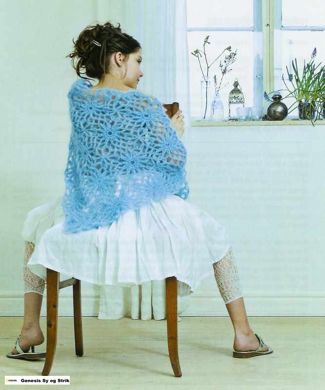 Hæklet sjal med frynser 14502648 Hæklet i Ombelle Mohair og Madeira Jewel På lager 25,00 DKK Vis produkt