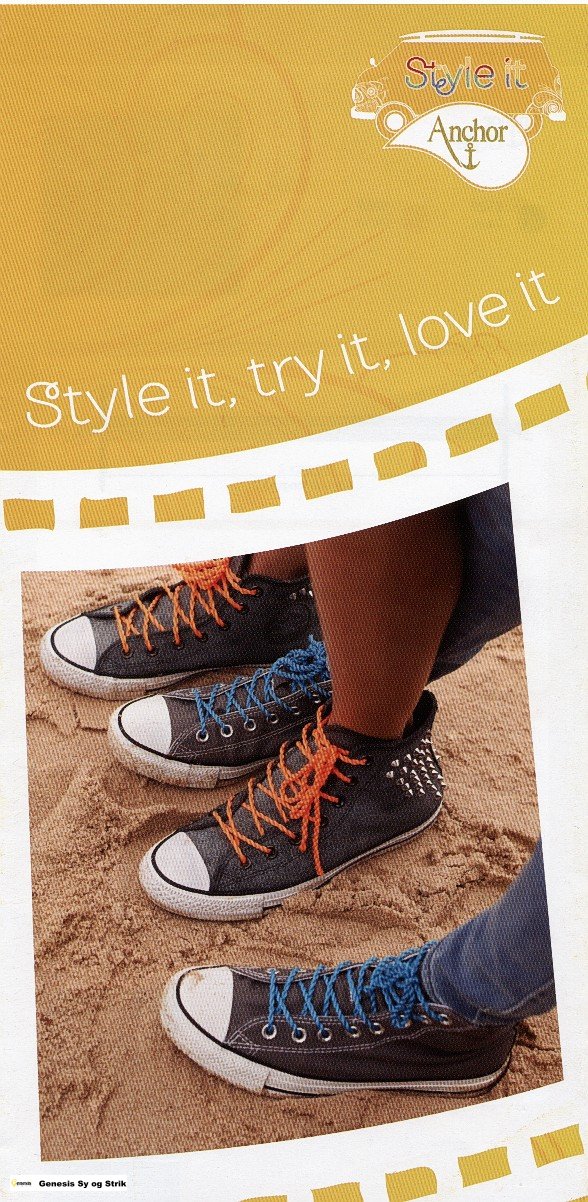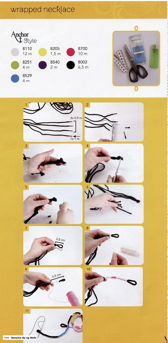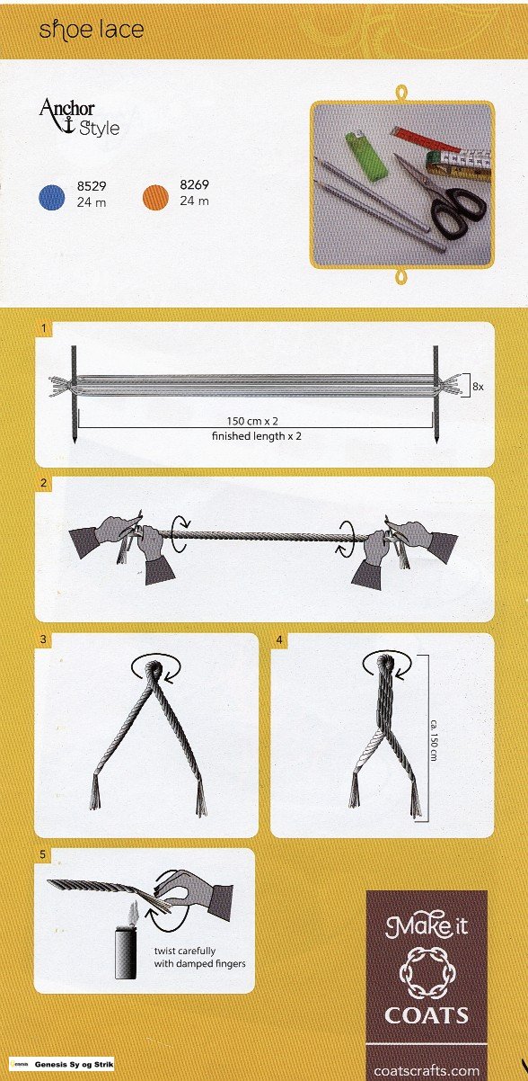 Folderen indeholder instruktion i fremstilling af smarte snørebånd, arm, halsbånd og pandebånd, nøglering og flettet armbånd.