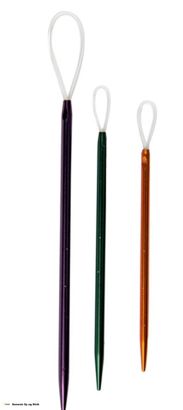 Nålene er ligesom en lille strikkepind med et nåleøje på. Gør det utroligt nemt at sy strikkede og hæklede ting sammen.