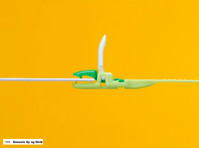 Klipsen giver et fast greb om elastikkens ende og gør det dermed let at trække gennem løbegangen.