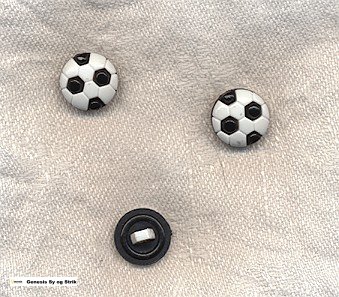 Plast knap udformet som en fodbold med hvide og gule felter.