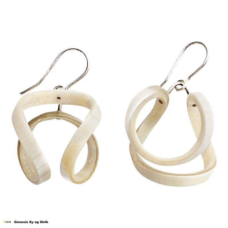 Elegant ørehænger, som fylder meget men kun vejer ganske lidt. Den er kreeret af en mat hornring, der er varmet op og efterfølgende formet.