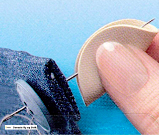 Nålefangeren, udført i gummi, gør det lettere at trykke nålen gennem f.eks. læder og andre lignende materialer.