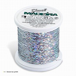 Madeira Jewel er en flot 100% polyester holografisk effekttråd, som kan bruges til at strikke sammen med øvrige garner, for at danne en flot sølveffekt i det færdige arbejde. Tråden tager farve efter garnet.