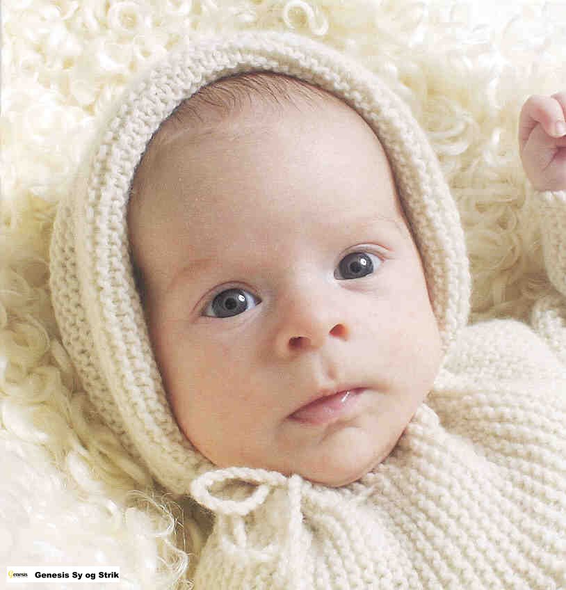 Her er strikkeopskrifter til bl.a. undertrøje, kyse, sokker, patentjakke, tæppe og kørepose.