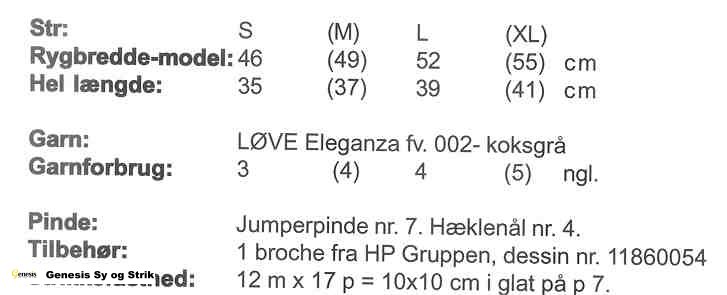 Klik på skemaet for at se størrelse, garnforbrug, pinde, strikkefasthed m.m.