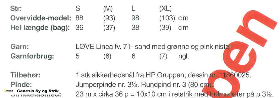 Klik på skemaet for at se størrelse, garnforbrug, pinde, strikkefasthed m.m.