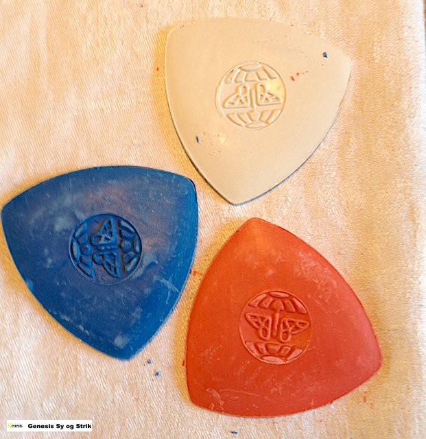 Skrædderkridtene er i farverne: Blå, Pink og Hvid.