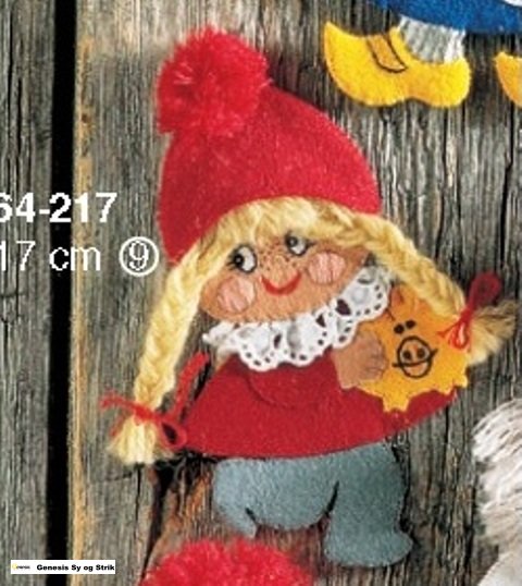 Lav selv en sød nisse. Pakken indeholder alt hvad du skal bruge. Mønster, filt, garn, evt. stof, nål og udførlig vejledning i de enkelte sting.