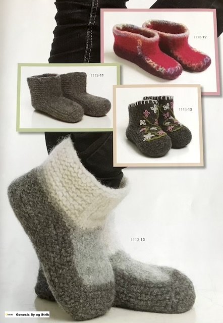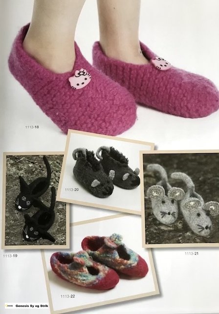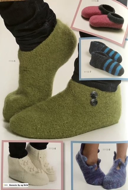 Opskrifter på dejlige hjemmesko i mange udformninger, tasker og siddeunderlag.