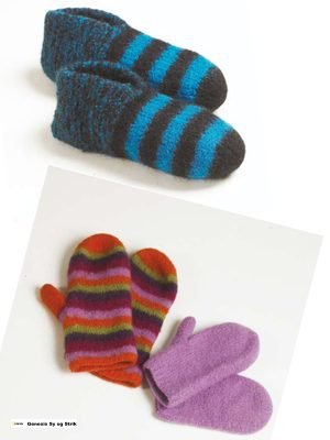 Sportsgarn er rigtig god til at filte, i hæftet er der nemme opskrifter på sutsko og vanter, der efterfølgende filtes i vaskemaskinen.