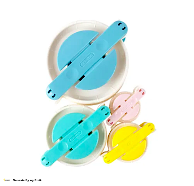 Pakke indeholder 4 pompom skabeloner i størrelserne: 3.50 cm, 4.50 cm, 6,50 cm og 8,50 cm.
