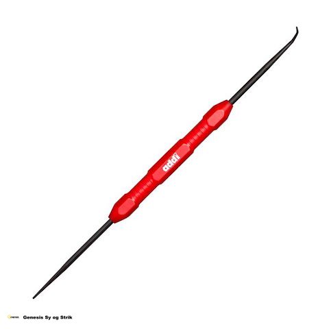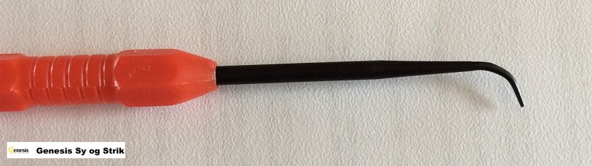 Vinklerne på krogene er forskellige så du nemt kommer ind i maskerne på strikketøjet eller hvis du vil løfte masker af eller på maskinen.