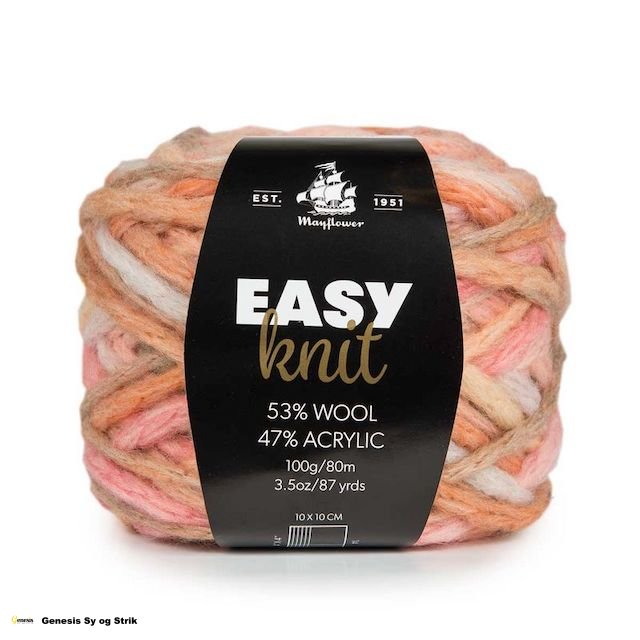 Mayflower Easy Knit beståe af 53% Uld og 47% Akryl.