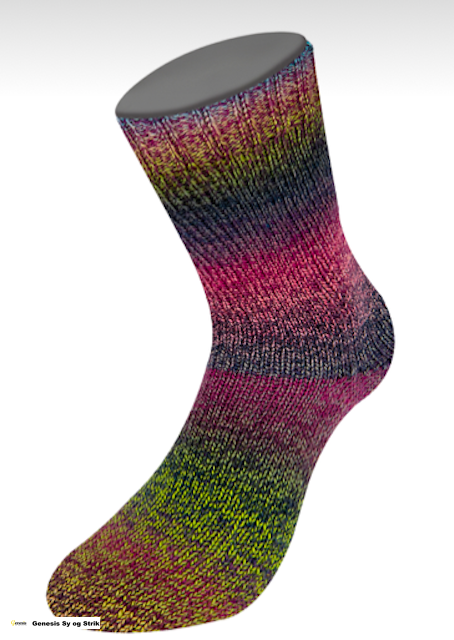 Dette selvmønstrende strømpegarn kan udover strømper også bruges til tørklæder m.m.