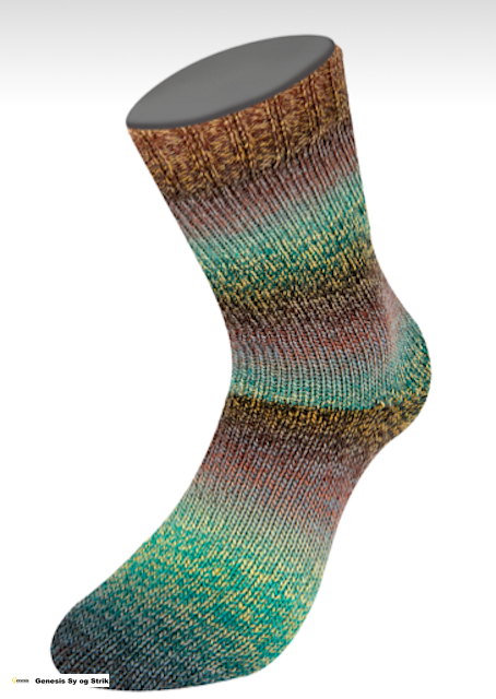 Dette selvmønstrende strømpegarn kan udover strømper også bruges til tørklæder m.m.